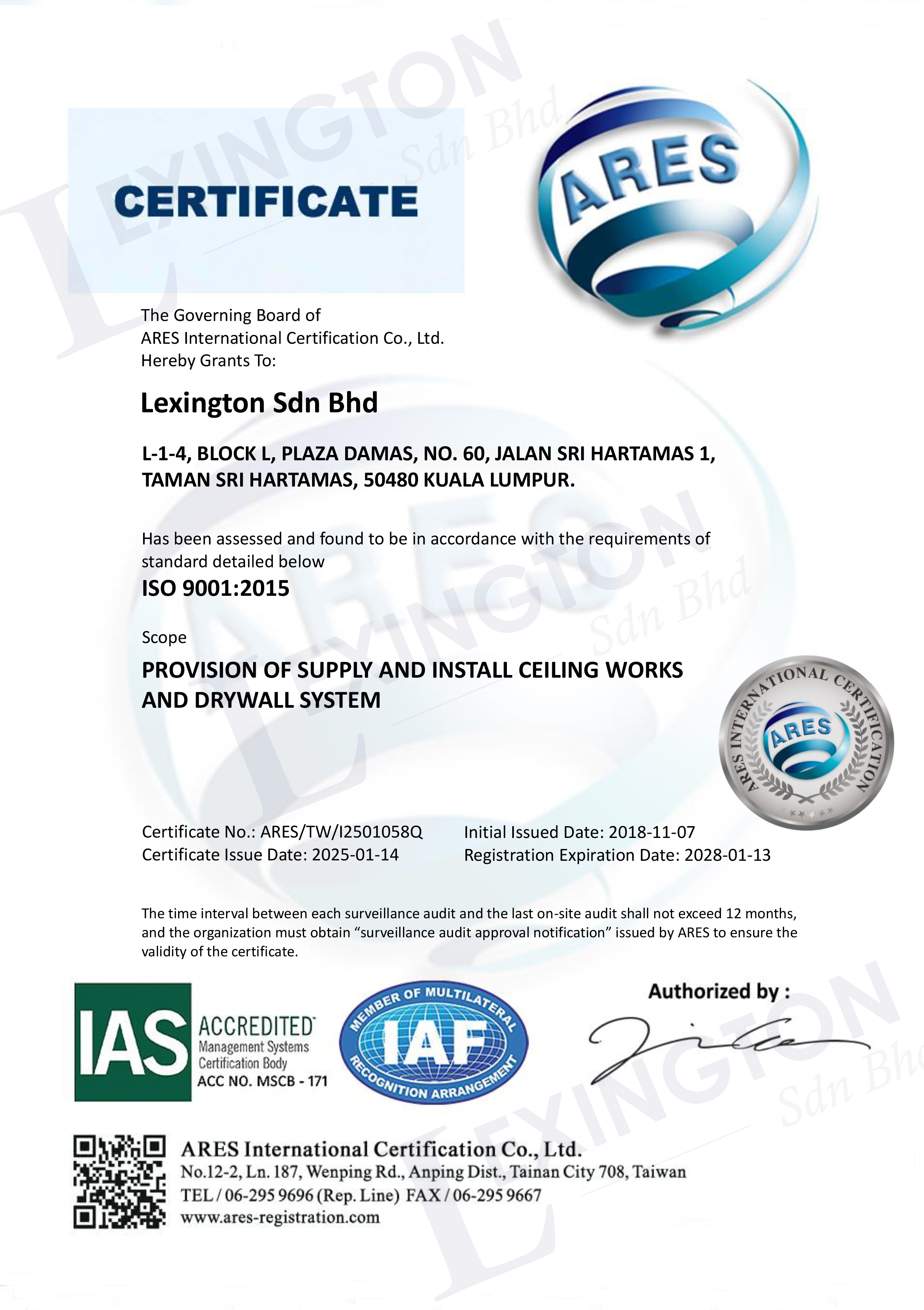 LEXINGTON SDN BHD is a leading specialist in architectural work focusing on ceiling and drywal works. We specialized in delivering the best quality works to cater to all client needs. We emphasize in becoming problem solver for architectural works either by implementing standard system or creating new system to cater to client needs. We emphasizes in providing quality works and solutions with stringent cost control in material and labour resource in order to maximize profit for its clients.